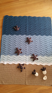 **Please note:** to complete a Turtle Beach blanket, you'll also need some turtles (pictured in some of the photos here). The [Baby Sea Turtle Collection](http://www.ravelry.com/patterns/library/baby-sea-turtle-collection) pattern is for sale separately, from my shop. They are not included as part of this pattern.