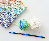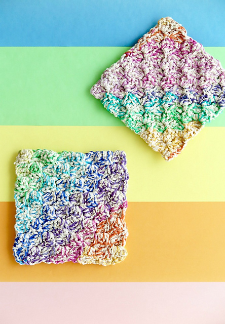 This washcloth uses 2 yarns combined to create a thick variegated texture.