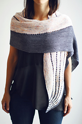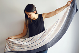 This shawl is worked from the centre top down. Stitches are increased at each side on every other row to give it its characteristic crescent shape, and the wedges are created by the use of short rows.