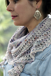 The Spindrift Shawl is inspired by the expansive Pacific Ocean. The deep sea swell of the crescent shape is complemented by a deep eyelet border and picot edge which froths like the foam at the crest of a wave.