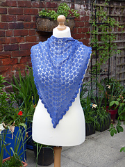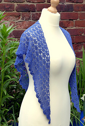 This lightweight lace shawl is an unusual arrow head shape allowing it to sit well over the shoulders and back. Crocheted from the centre top down, it is perfect for those on a tight yarn budget or if you are using a gradient yarn.