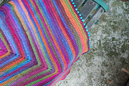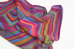 The blanket is worked in a spiral, so you do not have to join at the end of each round. Using a colour change yarn lends interest to an otherwise simple pattern.