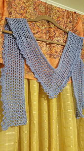 I love traditional triangle scarves, but sometimes they are bulky underneath the neck. I also love straight scarves, but sometimes they don't lay nicely underneath the neck area. This V-shaped scarf combines the best of both worlds - the ease and drape of a straight scarf and the decorative neckline V effect of a triangle scarf.
