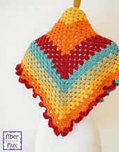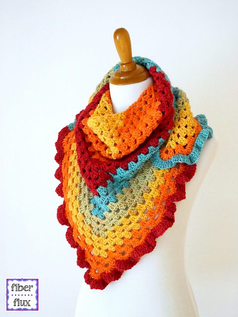 The Happy Go Lucky Shawlette is fun, colorful, and super easy to stitch up. A simple granny triangle shows off the self striping yarn beautifully and a fabulous ruffle gives it a fun and lighthearted texture!