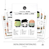 Crocheted on a 2.25 mm crochet hook using 4-ply fingering weight cotton yarn, Brian comes in a handsom pocket-size of 10 cm, Frank and Diego are 11 cm small. Of course you can use the yarn of your choice even in a different weight and on a larger hook.