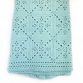 This pattern was designed for my niece as a wedding gift. I wanted a timeless yet simple square that could be used for a throw, a baby blanket, or even as a table runner. It came out quite elegant. This will be your go to pattern for a wedding gift or baby shower.