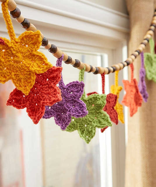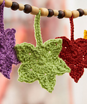 Crocheted leaves in gorgeous fall shades make the perfect banner. Whether you hang it at the window, on the mantel, above the bed or to add color to your work environment, you’ll love having this banner this year and for years to come. Strung on hemp cord with wood beads gives it the perfect natural touch!