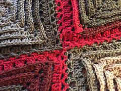 In my design today, there are layers within each of the squares that are in the afghan. The afghan is made up of 20 squares that are joined as you go and then with a final border around the edge.