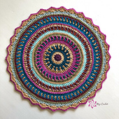 If you use the same hook size and yarn suggested in the pattern the Mandala measures approx. 30 cm in diameter.