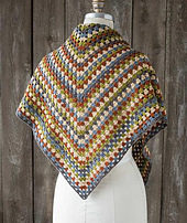 When is a granny square not a square? When it's half a square, or a triangle! Familiar yet current in Brooklyn Tweed Loft, a soft spun 2-ply fingering weight yarn that's woolly and light, the ample 64"/163 cm wingspan of this shawl wraps you up warmly. Over a tee or tucked inside your jacket, just a pop of rustic fun!