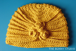This turban-style hat accented with rosettes uses just one skein of Vanna's Choice. It's a quick crochet project to make for yourself or as a gift. Hope you enjoy the pattern!