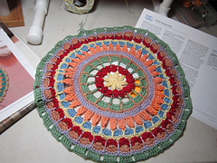 We’ve used fall colors for this beautiful mandala design, but we encourage you to crochet yours in your own unique color combination. Use it to add interest to a table setting or tray, or frame it for a wonderful art piece.