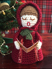 Using a worsted weight yarn, this lovely caroler finishes out at 5 1/2 inches, the perfect size for a table top tree! Or make a bunch in different colors and line up on your mantle.