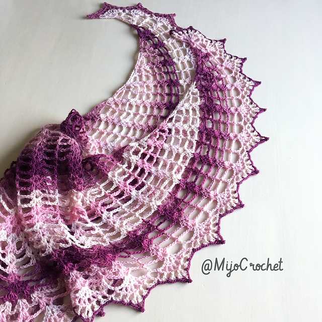 The Wild Wheat shawl is crescent shaped and can be made in any yarn with suitable hook, you just make the number of rows you like for your size.