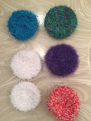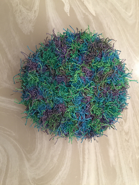 This double ply scrubbie works wonders on baked on, fried on or dried on foods. It works up very quickly, and depending on your preferred scrubbie size, you can get at least five of them from a skein of yarn... even more from the Red Heart Scrubbie Sparkle! It works up a great lather as well!