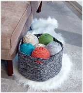 By crocheting this basket with two strands of yarn in contrasting colors, we get this beautiful salt and pepper marled effect.