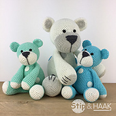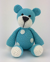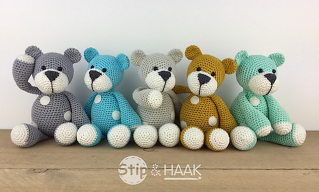 Je kunt ervoor kiezen om het beertje in één kleur te haken en er stippen van vilt op te naaien maar het is ook leuk om strepen te gebruiken.