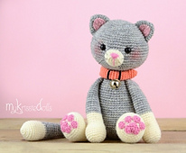 Poesje Mauw is met sokkenwol gehaakt en wordt zittend dan ongeveer 18 cm hoog. Wanneer je haar met katoen haakt wordt ze ongeveer 24 cm hoog.