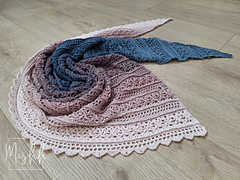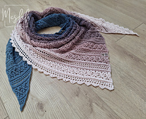 The pattern for the Laeky asymmetric shawl is quite simple, repeatable pattern. Based on it, you can make a scarf of any size from a skein of 500 m (for a child about 2 years old) to 1500/2000 m (for an adult).