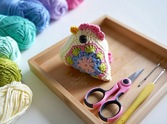The Granny Square Chicken is a colorful hen crocheted using two floral granny squares. It will add some rustic, farmhouse charm to your life! This versatile pattern allows for endless yarn color combinations, and can be crocheted using yarn scraps so itโs quite suitable as a stashbuster project. There are many ways to customize and make use of this pattern, such as adding a keyring to turn it into a keychain, or stuffing it with a satchel of lavender to make it into a soothing scent sachet for your car, office, or room.