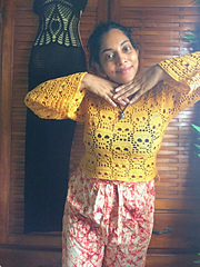 Due to the nature of the pattern (made to measure writing style) Yardage cannot be provided but with the lace yarn for a bust size of 36", less than 1400yds was used.