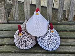 This plump chicken is so cute and snuggly! She works up quickly and is low sew. This is a good pattern for beginners with knowledge of basic stitches who are looking to start crocheting plushies or amigurumi. This pattern is written using Standard US crochet terms.