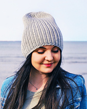 The extended half double crochet and slip stitch pattern mimics the beloved 2x2 ribbed fabric from knitting. The crochet fabric provides a thicker hat with more structure, yet it is just as stylish. The hat is very stretchy and is intended to be worn with 3-6” (7.5-15 cm) of negative ease. Depending on your yarn and fiber, the elasticity of the fabric may change. This pattern allows for an easy modification of the circumference in order to account for different elasticities.