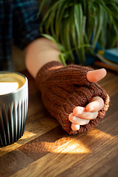 Construction begins with the cuffs, which are worked in a firmer 1x1 rib to ensure they stay on snugly and beautifully transitions to the bolder 2x2 rib that’s used for the rest of the mitts. Comfortable thumb shaping is worked with a single column of increases on the palm, creating a curved line that echoes the lifeline on the hand, allowing the ribbing to flow from the back of the hand over the thumb. After finishing the increases, put the stitches on hold to leave an opening for the thumb and continue working in the round for the rest of the hand section. Once this done, you complete the thumbs by returning to the held stitches to the needles and working the thumbs in the round.