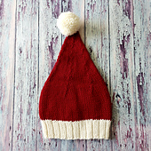 Classic knit wool Santa Hat with a ribbed hem, easy shaping and a pompom at the perfect length. It knits up fairly quickly. Sizes for the whole family.