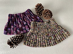 • 1 skein (100g) DK, Aran, worsted, or bulky weight for an 8-9” tall adult-sized cowl.