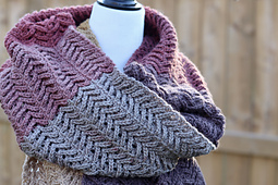 Yarn: Mandala Bonus Bundle by Lion Brand ® (100% acrylic; 1181 yds/1080 m; 10.5oz/300 g; (3) Light/DK weight): 1 ball per scarf (including fringe). Colour: Centaur