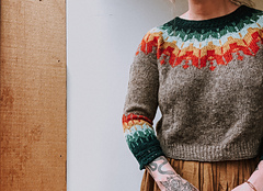 Talkeetna (tall-KEET-nah) is a colorwork yoke sweater knit seamlessly from the top down. This size-inclusive design features a striking colorwork yoke design, with colorwork sleeves and unique neck and cuff ribbing details. The relaxed design is versatile and easy to wear, with the sleeve and body lengths adjustable to suit different sizes. Short rows are worked at the back neck for an improved fit.