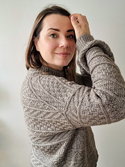 For the stitch patterns to show best, I recommend choosing unicolor or slightly tonal colorways. The length of the body and sleeves are easily modified to suit your own body measurements. The sleeves are supposed to be long, hitting your knuckles rather than your wrists. If you want shorter sleeves, adjust the length to your own body measurements / style. I recommend trying the sweater on every now and then while working on it to make sure you get the perfect length for your style.
