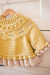 Ranunculus Sweater is worked top down and is completely seamless. It has a lot of texture, ruffles and bobbles. Works up really quickly and is fun to make. Looks great on little ones and on bigger girls too!