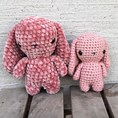 This adorable small bunny is part of our Kozu Palm Pets series. This little guy is just 4 inches tall with DK yarn and a 2.75mm hook. With a chenille yarn and a 3.25mm hook, it turned out to be 6 inches tall. And with blanket yarn and a 7mm hook? A whopping 11.5 inches tall!