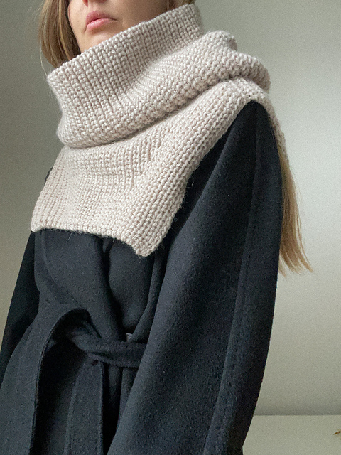 Gujo collar is a warm, soft cowl that is sure to keep you warm all winter. It is worked in half fisherman’s rib with visible decreases on front and back. The generous neckline is not only for dramatic effect but also allows you to drape it over the back of your head and keep your ears warm. The front is longer than the back in order to keep your chest warm, and it can be worn both over and under your coat.