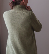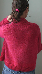 The REBEL cardigan is worked seamlessly from the top down. Start working the collar separately. Then the back stitches are picked up from the collar and the upper back is shaped with increases. Stitches are then picked up from each side of the back to work the shoulders. All pieces are then joined to work the yoke with increases for the body and sleeves down to sleeve separation. The sleeve stitches are then placed on hold, underarm sts are cast on, and you continue to work the body to the bottom. After the body is completed, the sleeve sts are worked top down in the round to the end.