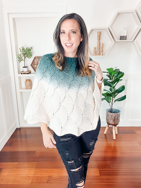 Crafted in one seamless piece with an eye-catching stitch, it’s as cozy as it is fashionable. Made with Wonderfluff yarn, this lightweight yet warm poncho will keep you snug all season long.