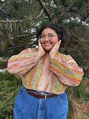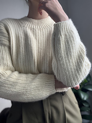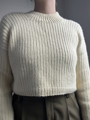 The I Smell Snow Sweater is a chic, mock turtleneck sweater inspired by the beauty of winter's first snow. The sweater design uses mock knit stitches and has a cropped fit with generous positive ease to ensure a relaxed, luxurious drape. If cropped and boxy is not your thing, don't worry; the sweater fit and length are totally customizable.