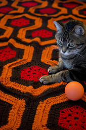 **GAUGE:** Centre red hexagon, approx. 4” across; brown border, approx. 2” wide, and orange border of 1 round of dc, approx. 1” (2 rows of dc should = approximately 2”)