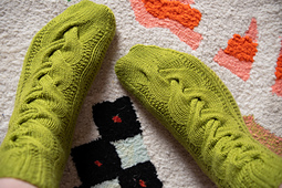 *Make some cozy house socks with DK weight yarn! These cabled socks are knit top-down with a broken rib stitch and a plump cabled braid. Choose between four sizes and enjoy the relaxing rounds of textured stitches. The DK weight gauge produces a quick to knit project that’s perfect for gift giving or a fun weekend project for yourself.*