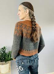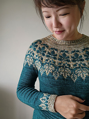 Der Lorien Sweater ist ein Top Down gestrickter Pulli mit großem Blättermotiv, inspiriert von den Wäldern Lothloriens aus Tolkiens Werk`Der Herr der Ringe´.