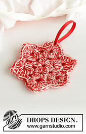 **Crocheted Christmas star in DROPS Daisy and DROPS Kid-Silk. The piece is worked in the round, from the middle outwards. Theme: Christmas.**