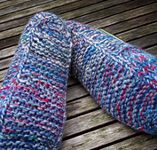 Die Pantoffelhelden werden mit 6 Resten 4-fach Sockenwolle gleichzeitig gestrickt.