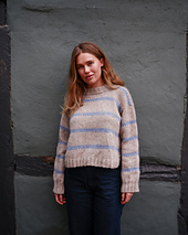 Lindgren Sweater is worked in stockinette stitch from the bottom up, both flat and in the round. The bottom hem is curved with splits in each side, while the body and sleeves have graphic colorwork stripes that are worked using the Fair Isle technique. Lindgren Sweater is worked holding 1 strand of Heavy Merino + 1 strand of Soft Silk Merino together throughout for both the main color and the contrast color.