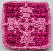 Little Mosaic Squares are worked using the **overlay mosaic crochet ** technique**, from centre-out**, and were designed with beginners to this technique in mind.