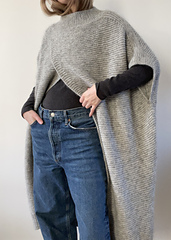 Umma means ‘mother’ in Korean, and the cape will feel like a mother’s embrace. Umma is also the mother of the Nabi and Narae patterns, which both feature the criss-cross detail across the front. Umma cape is worked top-down, beginning with the neckline. Stitches are then picked up under the ribbing to create the iconic cross opening at the front, followed by increases around the shoulders and short rows for shaping.