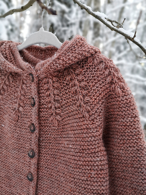 The hood is knitted last and it also has an I-cord edge.