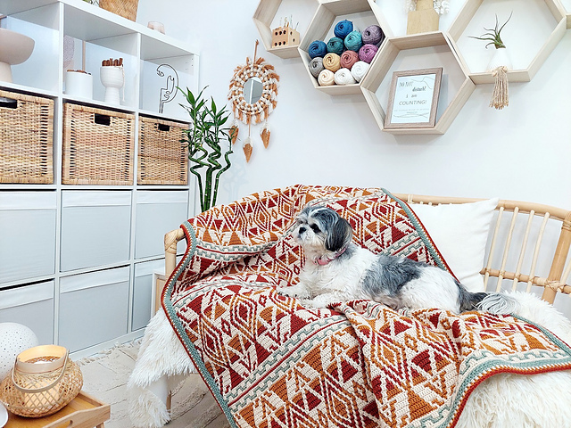 You can use any yarn, colors & appropriate hook size that suits your project and create as large/small project as you wish by adjusting the number of repeats in width and/or in height.