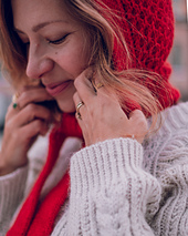 The Cosy Coco Hood is the perfect accessory to keep both your head and neck warm on a cold day. The large decorative bow at the front adds a playful element to the design and the honeycomb stitch pattern is both quick and fun to knit. The hood has a set of snap buttons at the front of the neck which means you don’t have to pull it over your head to wear it - no more getting your hair all messed up, yay! You can also wear the Cosy Coco Hood down as a neckwarmer to add a nice detail to your outfit.